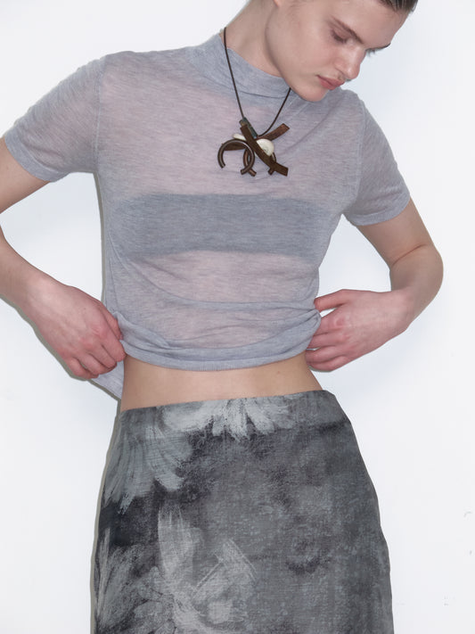 We began with flowers and followed a memory, sketching the gentle thread that ties garment to memory. The collection plays out in soft hushed moments, like a whisper of fabric against skin. Natural warmth, such as wool, mohair, and yak forms soft layers, while sketching delicate contours that shift with every movement. Naturally aged textures and wax‑dyed fabric capture marks of time and wear, storing memory in each crease.